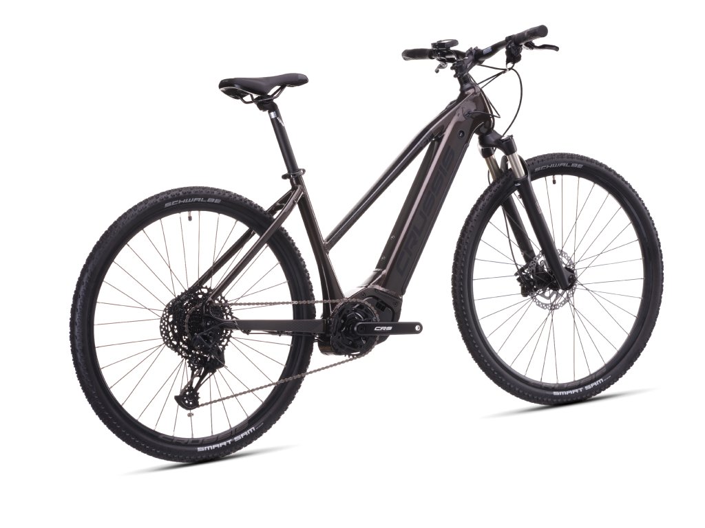 Design kola je zaměřený na praktičnost i styl – elegantní integrace baterie do rámu udržuje nízké těžiště a lepší ovladatelnost. E-bike je osazen komponenty, které garantují spolehlivost a komfort, včetně hydraulických brzd SHIMANO Deore a převodového systému SRAM, který zvládne i náročnější stoupání.