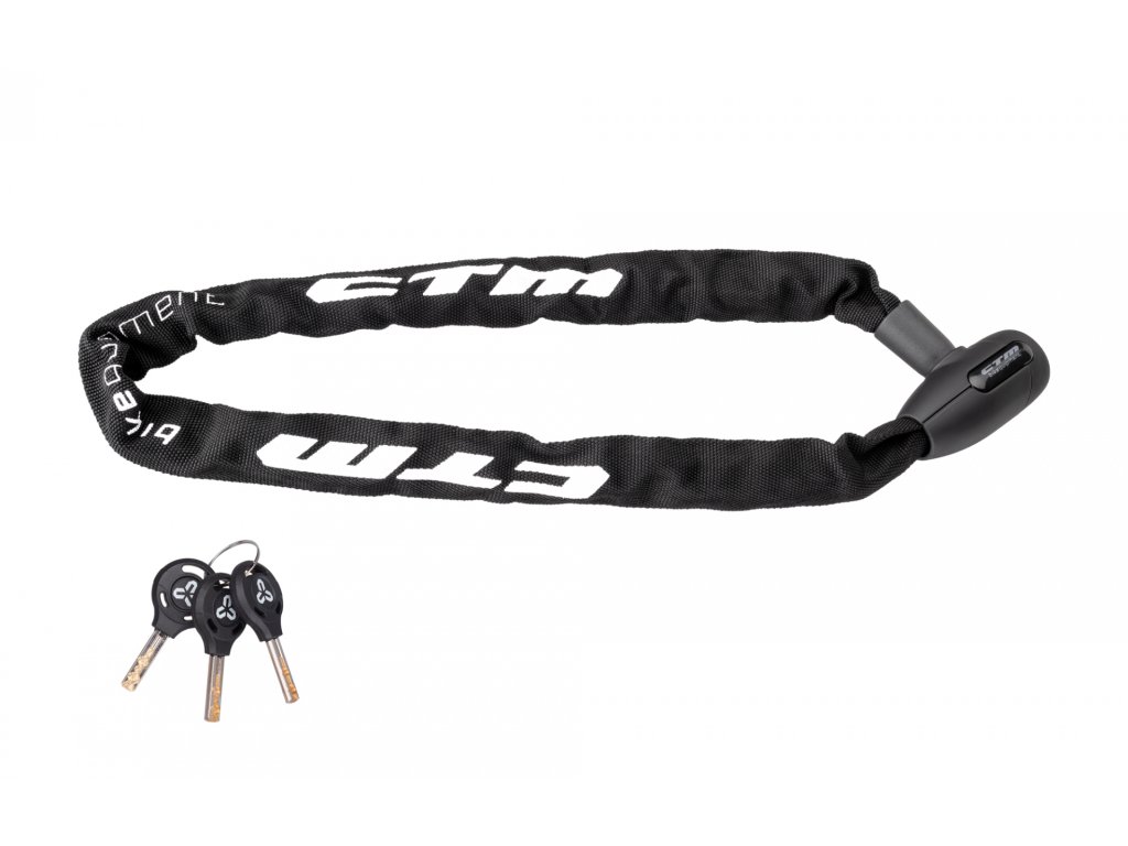 Kvalitní řetězový zámek Pogumovaná povrchová úprava hlavy a utěsněné pouzdro řetězu Balení obsahuje 3 klíče Extra odolná konstrukce Rozměry: 6x900 mm Barva: matná černá