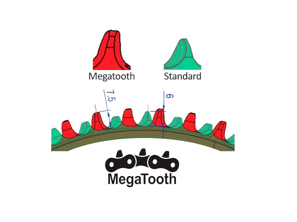 Spojením technologie MegaTooth (zuby s vysokým profilem) s technologií Thin/Thick (střídání tenkých a silných zubů, které perfektně zapadají do vnitřního tvaru řetězu) byl dosažen optimální výsledek, který zabezpečuje, aby řetěz zůstal na převodníku i v nejtěžších podmínkách.